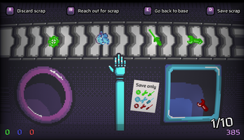 Frutiger Aero elements (such as Lava Lamps and Computer Mice) can be found as items rolling down the conveyor belt in the scrapyard.
